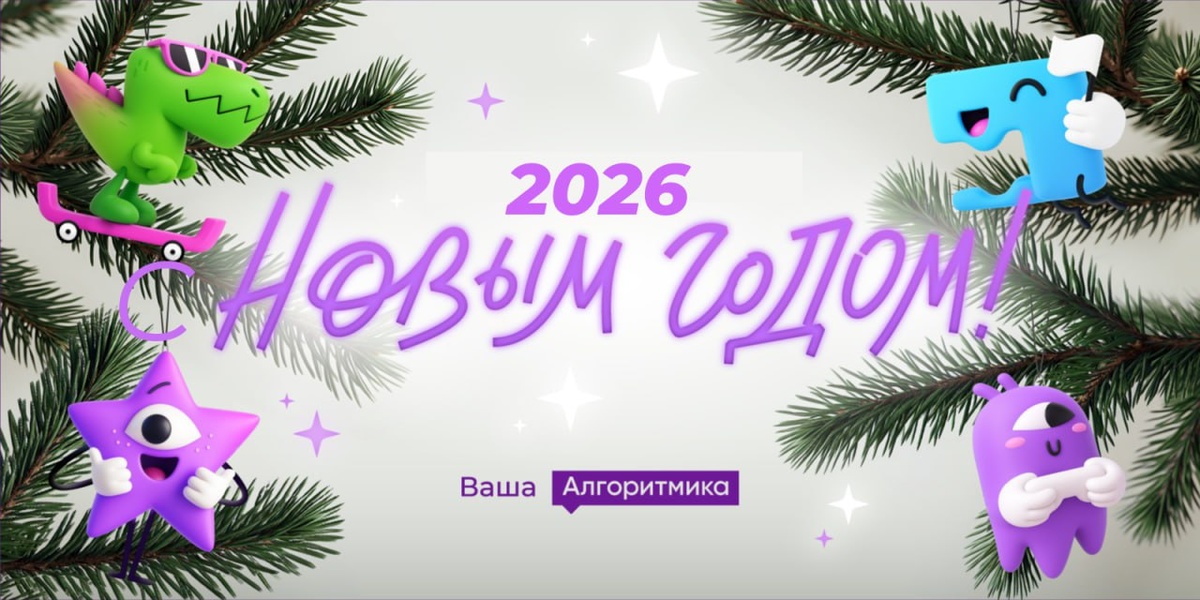 ! С новым годом вас! Пусть в 2026-м каждый новый навык складывается в большой путь — так же, как строки кода собираются в работающий проект. Спасибо, что учитесь, пробуете, ищете свои решения. С Новым годом — годом новых открытий и уверенных шагов вперед! 🌲💜