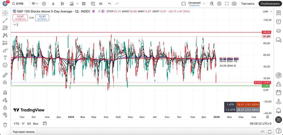 ВЫВОД : $S1FD и $NDFD подошли к зоне перепроданности, можно завтра (сегодня — выходной) ожидать зеленый день на рынке