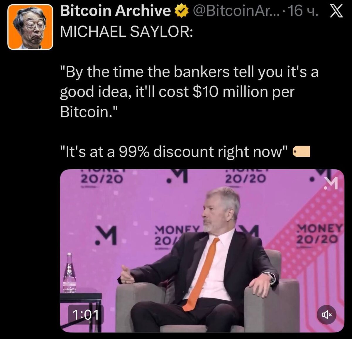 : «К тому времени, как банкиры скажут вам, что это хорошая идея, стоимость одного биткоина составит 10 миллионов долларов». «Сейчас действует скидка 99%»