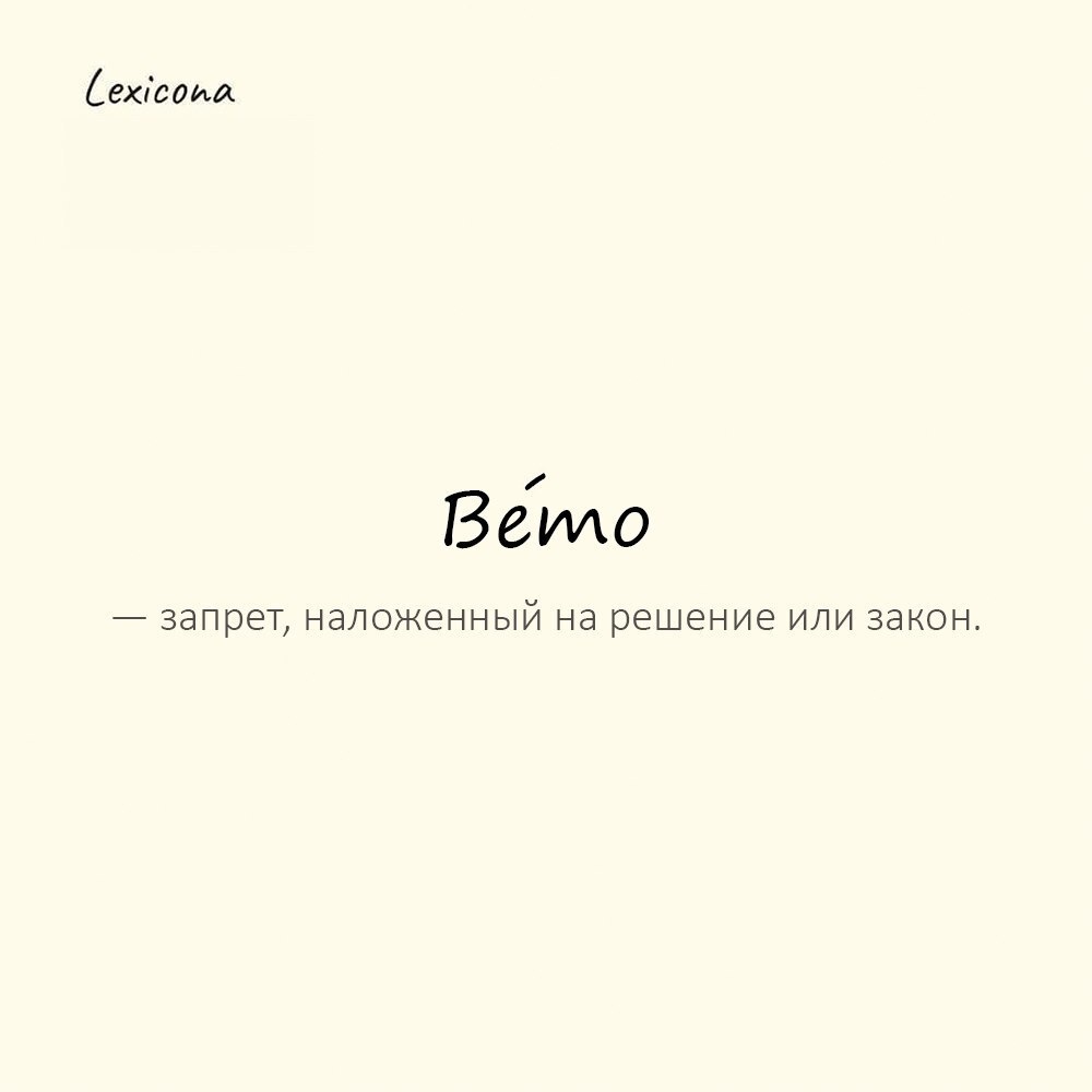 Ве́то — запрет, наложенный на решение или закон.