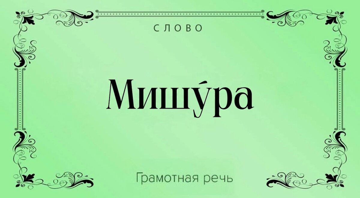 Слово «мишу́ра» обозначает блестящие декоративные нитки или украшения, используемые для отделки одежды, ёлки или интерьера. В некоторых словарях утверждают, что оно пришло из арабского (от muzevvere — «подделка»), однако Макс Фасмер в своём «Этимологическом словаре» опровергает эту версию и указывает на тюркское происхождение: татарское mišurа или мордовское mišarа, что означает «нитка фальшивого золота или серебра».