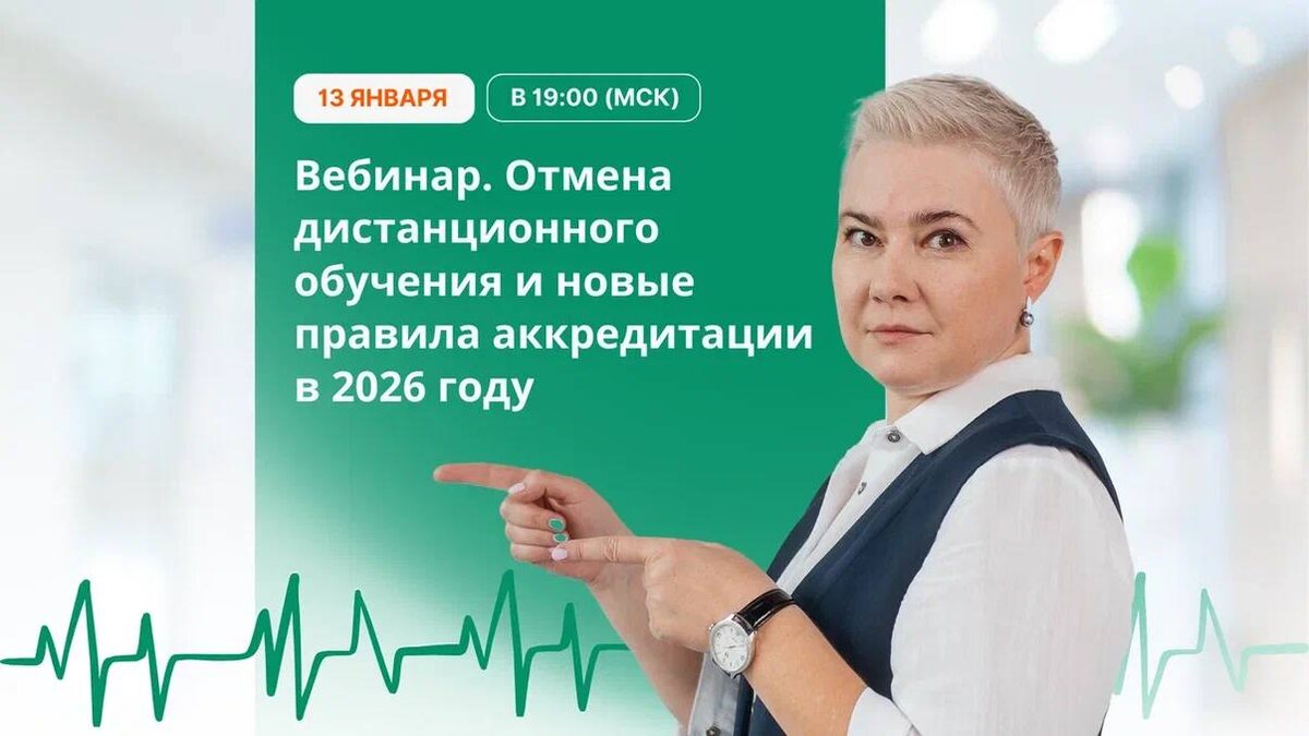⚡️ 13 января Наталья Купкина, руководитель Учебного центра Медиатор @nmo_akkred проведет бесплатный вебинар. Мы обсудим последние изменения в обучении медработников, а также изменения аккредитации с 2026 года. 📌Дата и время: 13 января в 19:00 (мск) 📌Регистрация участников открыта на сайте: https://mediator-med.ru/webkurs Все участники получат бонус – сразу 3 инструкции от нашего методического отдела. Семинар пройдет на отдельной площадке, ссылку для подключения вы получите после прохождения регистрации. Программа вебинара: – Продление сертификатов до 1 января 2027 года: что нужно сделать – Запрет на заочное и очно-заочное обучение с 1 марта 2026 года – Как учиться в связи запрета на дистанционное образование в здравоохранении – Последние изменения 2026 года в процессе периодической аккредитации – Какое обучение больше не примут. Почему портал НМО не гарантия, что обучение засчитают – Нужно ли вносить весь стаж в ФРМР и как вообще его подтвердить – Как проводится оценка