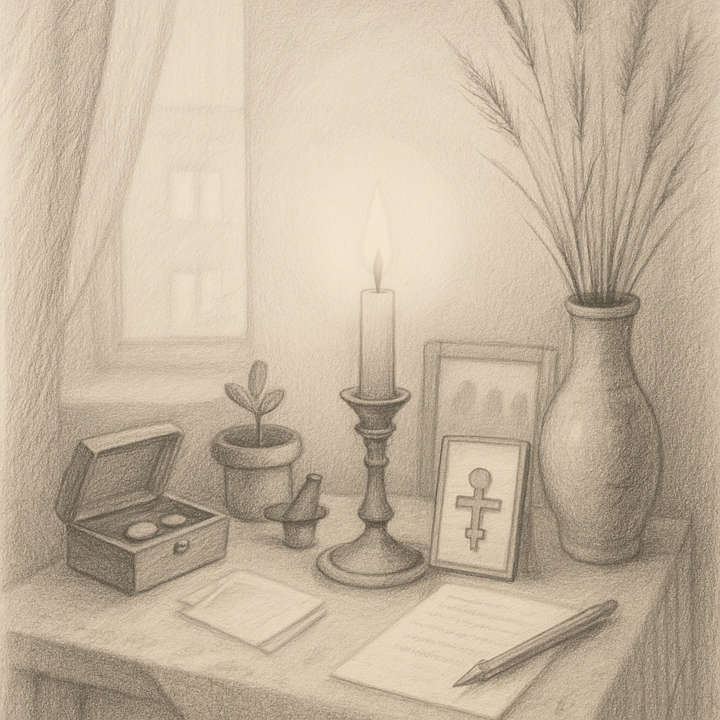 Алтарь достатка у горожанки — не храм в полном смысле, а уголок силы и благодарности.