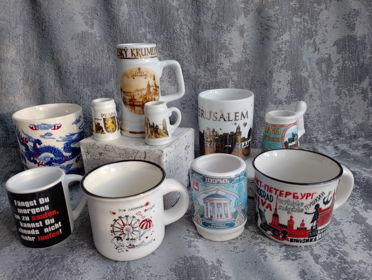 Новый год начался морозным снежным солнечным днем.Давно хотела отснять свою коллекцию маленьких посудинок для питья и выпивания. Начало ей было положено еще в 2013 году,когда я ездила в Чехию,но тогда я и не догадывалась,что это будет коллекция.Задача была привезти побольше на память,и главное,уместить всё это в чемодан.Не забываем,что я везла помимо всего 5 кг бисера и бусин.)))К мини кружечкам из Праги и Крумлова добавилась кружечка из Австрии,мы ездили туда машиной на денек. Петербург,Пенза и Лазаревское добавились от сына и подруги. Кружечка из Израиля единственная,там так дорого всё,я в основном на кремах сосредоточилась.Синий дракон из Китая.Были последние 20 юаней и полчаса до автобуса,ну я и пошла вдоль по улице.))Плюс еще лягушата и красивущая девушка в народном на холодильник.Я мелкие фигурки тоже люблю,для фото использую. Мелкое стекло тоже есть. Белая китайская рюмка тоже сюда к рюмкам приткнулась.На кружечке из Хуньчуня написано,что кто много работает,тому почет и уважени