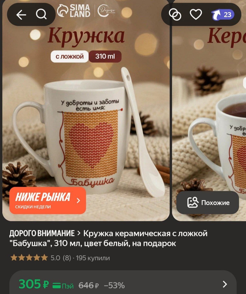 Кружка керамическая с ложкой "Бабушка", 310 мл, цвет белый, на подарок за 305₽