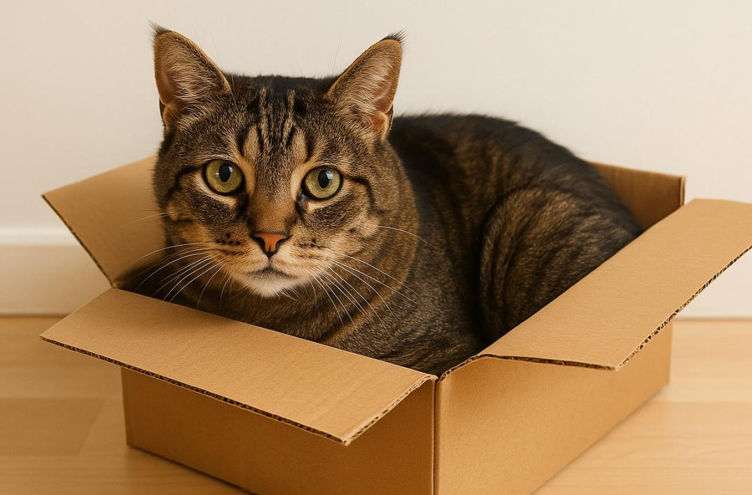 Картонная коробка — отличный изолятор. Она удерживает тепло тела, создавая микроклимат. Плюс кошки обожают тесноту — когда тело со всех сторон касается стенок, теплопотери минимальны. Вот почему ваш кот выбирает коробку явно меньше своего размера и сидит там, сложенный втрое.