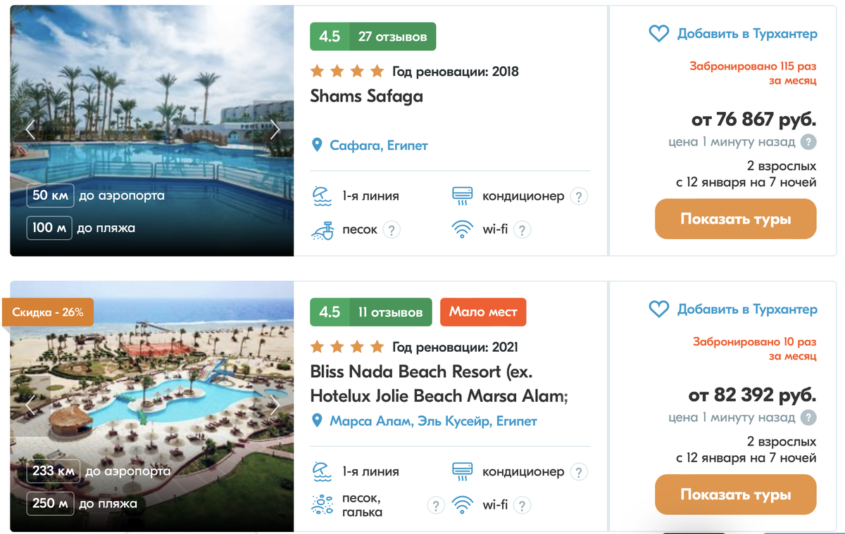Для многих было новостью то, что в Эмиратах зимой начинается сезон ветров, но не все знают, что сезон ветров в зимний период начинается и в Египте. Дело в том, что ветер не просто сильный, а очень холодный. При этом солнце продолжает припекать достаточно сильно и это не ощущается из-за холодного ветра. В результате есть вероятность сильно обгореть. Однако важно правильно выбрать курорт и отель, и можно вполне комфортно отдохнуть. Тем более что в зимний период вода в Красном море, несмотря на холодный ветер, остается достаточно теплой, а стоимость отдыха в Египте, особенно после новогодних каникул, очень привлекательна. Например, сейчас можно приобрести бюджетный недельный тур на двоих с вылетом из Москвы во второй декаде января в среднем за 80 тысяч рублей. Из регионов тоже можно найти такие цены. Причем, это будут отели 4 и 5* со "все включено", имеющие хороший рейтинг. Но все-таки это бюджетные варианты. Если мы находим такие варианты, ссылками на них делимся в телеграм. Сезон ветров