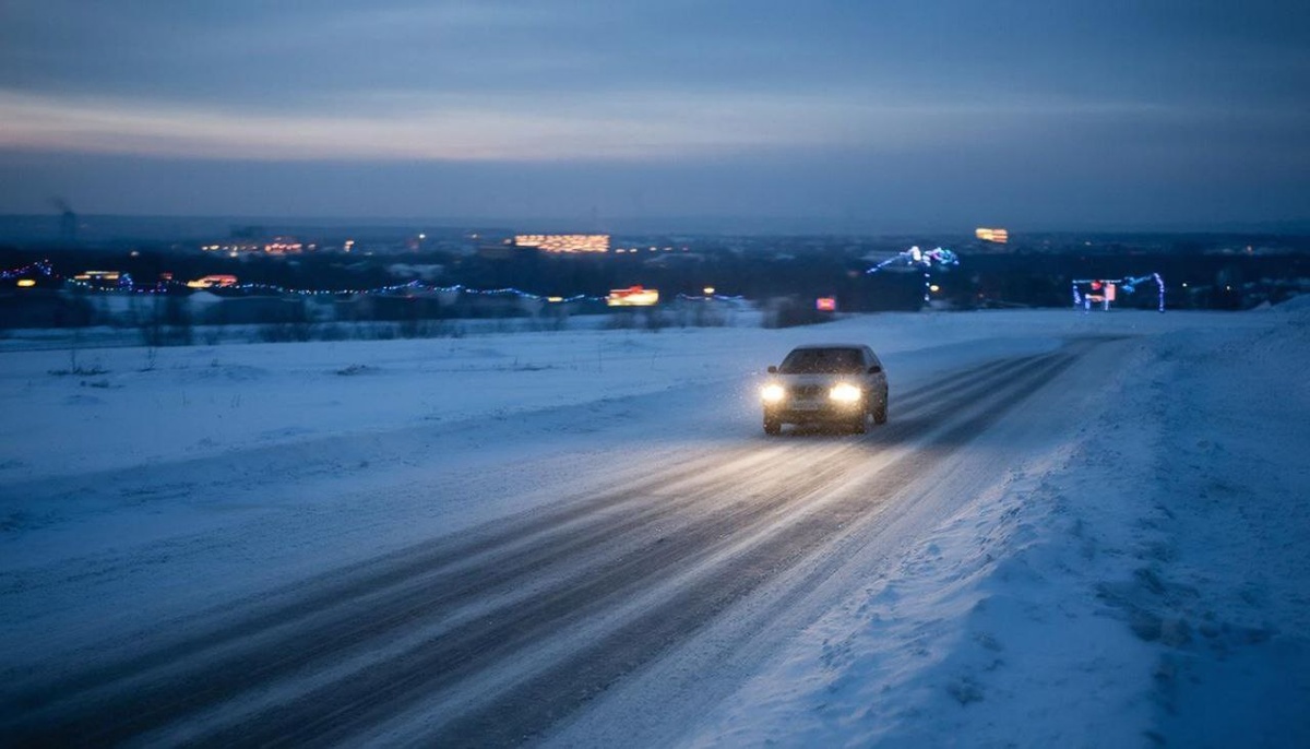 Зимняя трасса, серое небо, обочина, по которой взгляд скользит автоматически — ничего не задерживая.