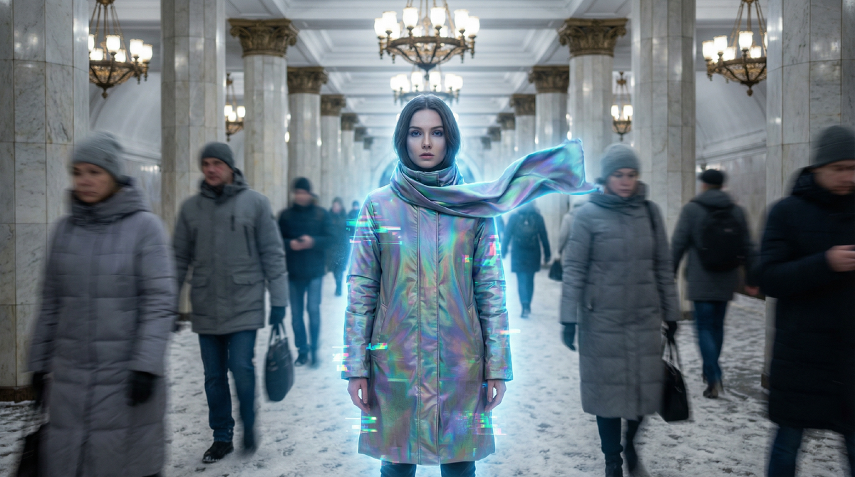 Она не вписывалась в этот вагон. Не вписывалась в этот год. На ней было пальто странного кроя — ткань казалась матовой, но при движении по ней пробегали едва заметные искорки, словно в материал вплели оптоволокно. На шее висел шарф, который лежал так идеально, будто не подчинялся гравитации. Но главное — глаза. Они были слишком живыми для декабря 2025-го. В них не было той всеобщей московской усталости.