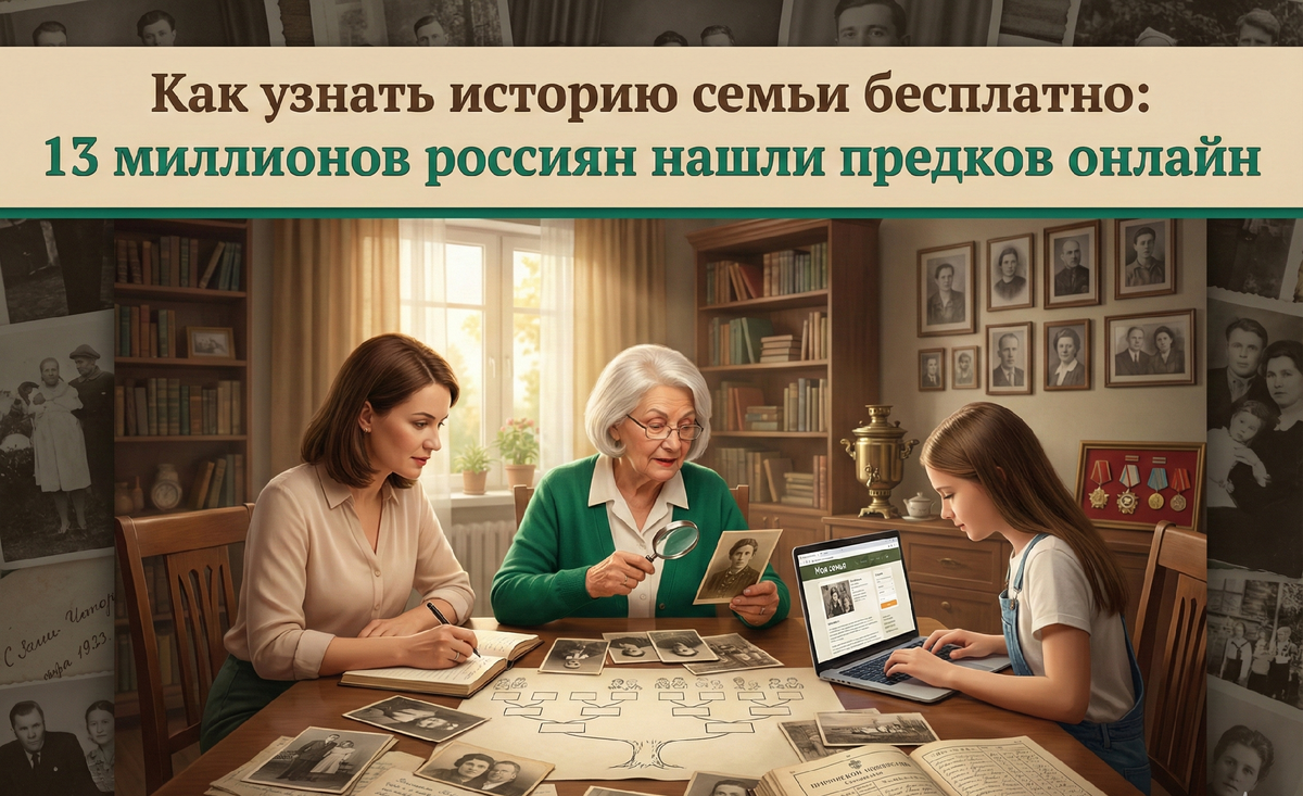 25 декабря 2025 года генеалогический сервис Главархива Москвы «Моя семья» отметил 5-летие. Им воспользовались более 13 млн. человек для изучения истории своих семей. Оцифровано 13,5 млн. страниц документов с 1694 года. С 2025 года материалы доступны школьникам через МЭШ. Генеалогия онлайн бесплатно: как найти предков по фамилии 13 миллионов россиян уже открыли тайны своих семей. Сервис «Моя семья» Главархива Москвы даёт бесплатный доступ к документам с 1694 года — метрическим книгам, ревизским сказкам, церковным записям, документам ЗАГС. Что можно узнать: • Когда и где родились ваши прабабушки и прадедушки • Чем занимались предки, где жили, в каких сословиях состояли • Историю семьи на протяжении 300+ лет • Родственные связи, о которых вы не знали База охватывает 20 регионов России и все конфессии — православных, католиков, мусульман, иудеев. Это крупнейший генеалогический архив в стране. Как составить семейное древо с ребёнком: зачем детям знать историю семьи С 2025 года сервис «Моя