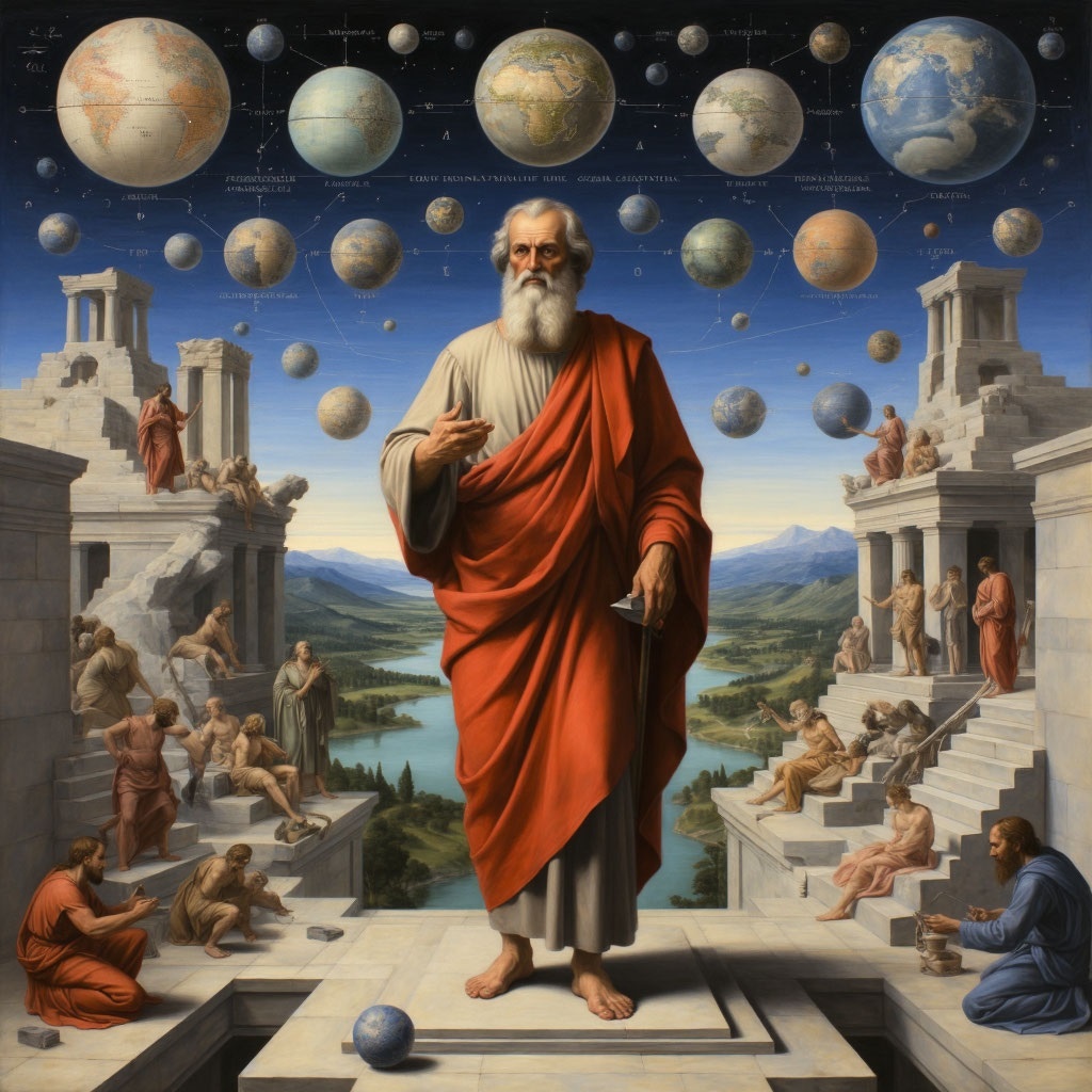 2. Мир Вещей / Мир Становления: Тленный, изменчивый, чувственно воспринимаемый. Вещи — лишь бледные тени, несовершенные копии Идей. Они причастны Идеям, но никогда не достигают их совершенства.