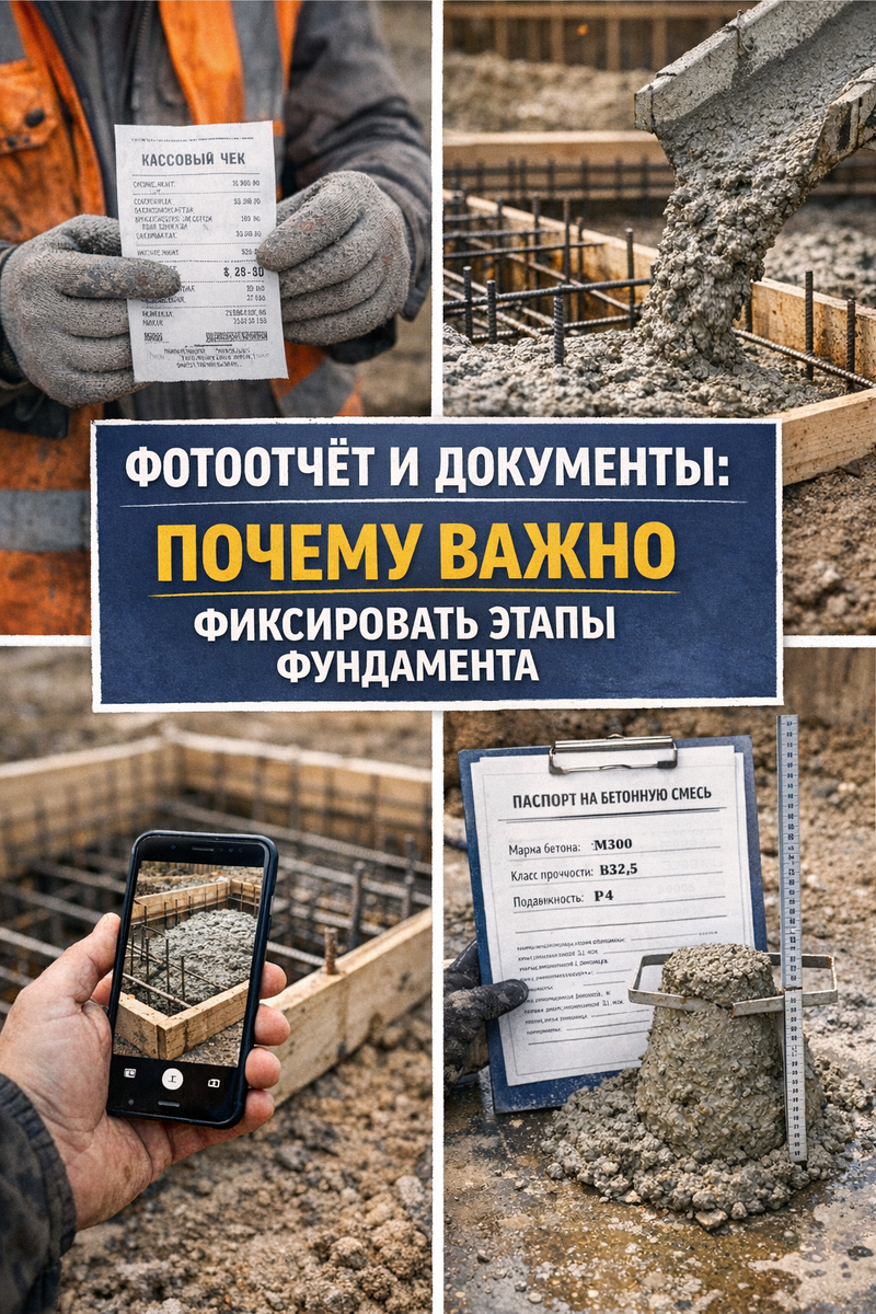 Ответ в привычке: фото + документы. Одна папка на телефоне и одна папка в бумагах — и вы защищены сильнее, чем многие “с договором на коленке”. Когда вы принимаете фундамент, вы видите: Но вы не видите: Через месяц или год может появиться трещина — и начнётся цирк: И вот тут выигрывает не тот, кто громче, а тот, у кого есть доказательства. Не надо превращать стройку в кинооператора.