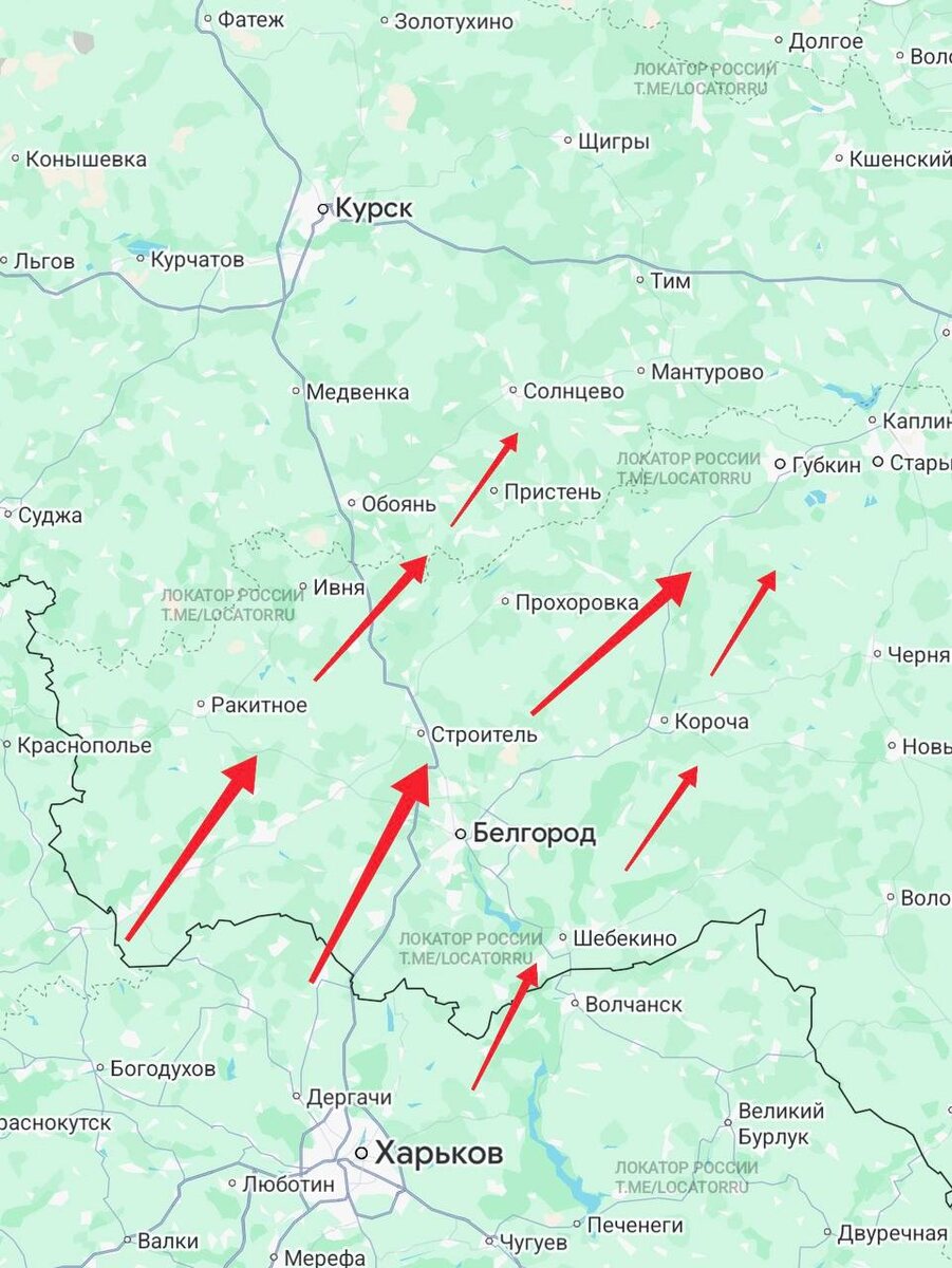 Фиксируется массовый пролёт над Белгородской областью в направлении Курской области, Воронежской области, Липецкой области и далее в тыл.