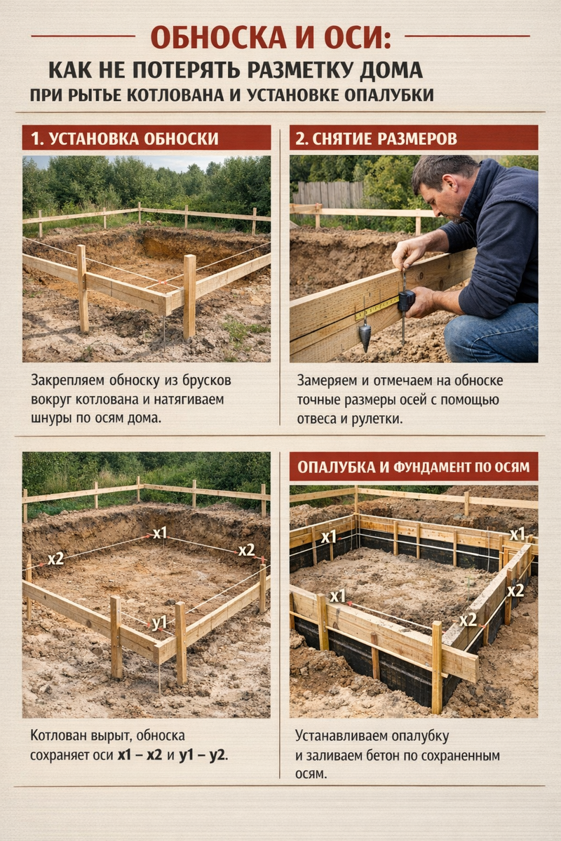 Это ваш способ держать дом в руках даже тогда, когда вокруг грязь, техника и хаос. Обноска — это временный “каркас” вокруг будущего дома, который хранит оси и размеры.