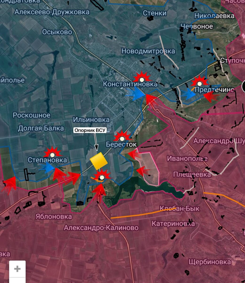 ▫️На южном охвате наши войска подвигаются к Степановке, бои идут за восточную часть балки, примыкающей к селу. ▫️Также идут бои в направлении примыкания дороги (здесь у хохла мощный укреп) от Александро-Калиново к трассе на Константиновку. ▫️На северной стороне Клебан-Быкского водохранилища бойцы ВС РФ взяли под контроль территорию 2х1,5 км. ▫️В районе Предтечино и Константиновки позиционные бои без особых изменений по линии фронта. ▫️ Дневник Десантника 📲 Дневник Десантника в МАХ