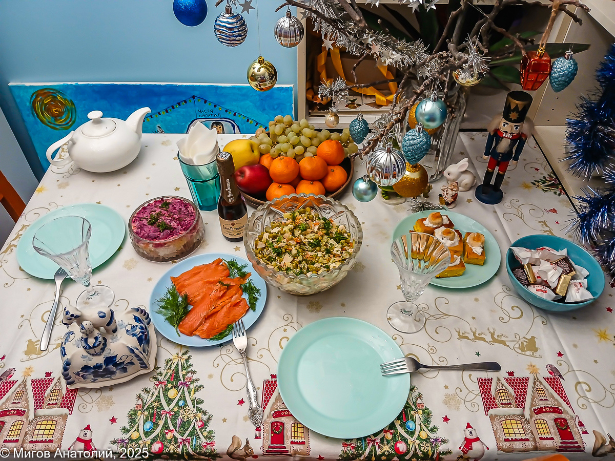 Один раз в году можно и нарушить график выпуска ежедневных публикаций в Дзене. Как видите, сегодняшняя статья выходит, не как обычно, ровно в 07:00 по московскому времени, а как придётся. Вчера не до того было, последний день уходящего года, как всегда, хлопотный. Ну а сегодня, спал до девяти утра. Новый год встречали вдвоем с женой. Это если не брать в расчет одну собаку породы корги и трёх кошек, которые хотя и не могут похвастаться безупречностью своего генеалогического древа, но считают себя королевами. Ну и были мы на постоянной видео-связи с детьми, и в полночь сообща поднимали бокалы с шампанским. Новый год-2025 мы с Леной праздновали скромно, без шампанского и традиционных закусок. Таковы тогда были обстоятельства (здоровье). Но теперь мы уже смогли себе позволить. На столе у нас был салат оливье, селедка под шубой, малосольная форель и творожные тортики. Ещё фрукты и конфеты. Выпили бутылочку шампанского объемом 0,2 л. И оказалось, что это количества нам на двоих вполне достат
