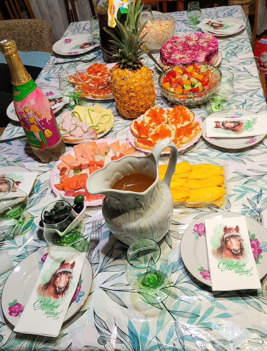 Отмечать Новый год мы все собрались у мамы. Такая у нас традиция. Собираемся все родственники. К сожалению, брат двоюродный не смог нам составить компанию, он в этот день работал.