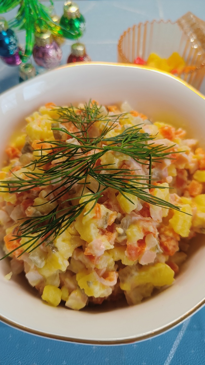 Всем привет! С Вами Татьяна, пенсионерка. Мне 74 года, мой рост составляет 151 см, а вес — 52,75 кг. ✅ 27 февраля 2023 года мой вес был 82 кг. За период с февраля 2023 по декабрь 2025 года мне удалось похудеть на 29 килограммов, сейчас я поддерживаю нормальный вес. Очень рада, что мне удалось-таки похудеть! *** 31 декабря. Утро началось с подготовки к празднику: дочка взялась за нарезку салатов. Овощи для них она заранее сварила накануне. Первым приготовила классический Оливье, а потом сделала его особенную версию для меня — с кальмаром, без яиц и на постном майонезе. Внук попросил испечь фокаччу, тесто для которой мы поставили вечером на натуральных дрожжах. Пока мы занимались салатами, ароматная фокачча быстро испеклась. Я подключилась к готовке и приготовила любимую селёдку под шубой, тоже с постным майонезом. Завтрак у меня вышел по-настоящему предновогодним — с салатиком из кальмара и теплой фокаччей. Днём мы с дочкой отправились в торговый центр. Я получил