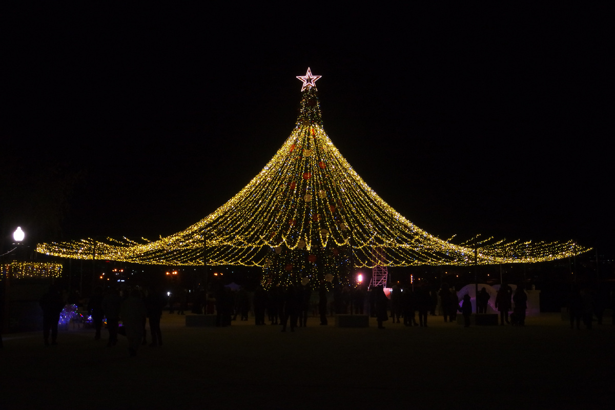 Всех с Новым годом! - пусть будет уже наконец мирным... Спасибо неизвестному подписчику за донат! Первого января это было особенно приятно!.. Мы вчера (в прошлом году, да) прогулялись до новомодной ёлки:) - той, что возле памятника царю - Александру III. Это сейчас самая модная ёлка, хотя меня-то как раз немного забавляет этот провинциальный ажиотаж, ибо такая ёлка стоит в Калининграде, в Луганске, такая ёлка стоит в Туле и... я долго могу перечислять. Ну да это именно мои черты характера (ни в плюс, ни в минус, а просто так есть) - я не сильно люблю массовое и типовое. Или... люблю, но когда всё оно "устало", обветшало и перестало быть супермодным и на слуху. Медуза? Летающая тарелка? - как правильно эту композицию называют? Но... в данном случае мы все обречены на подобные ракурсы - надо просто смириться, расслабиться и... получать визуальное удовольствие: ...от летающих ёлок, захвативших Российскую Федерацию:) Ледяные фотозоны - мои любимые. Не то, чтобы я намеренно снимала "иркут