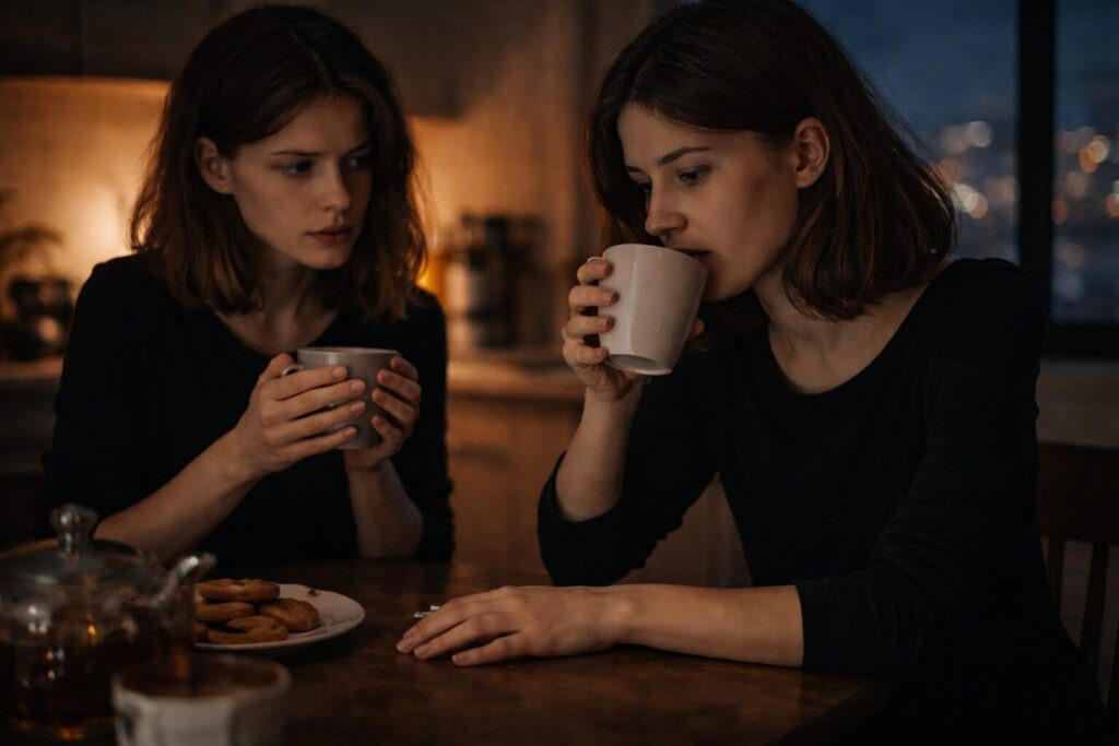 Достала чашки. Руки двигались сами — заварка, кипяток, сахарница. Обычные движения.