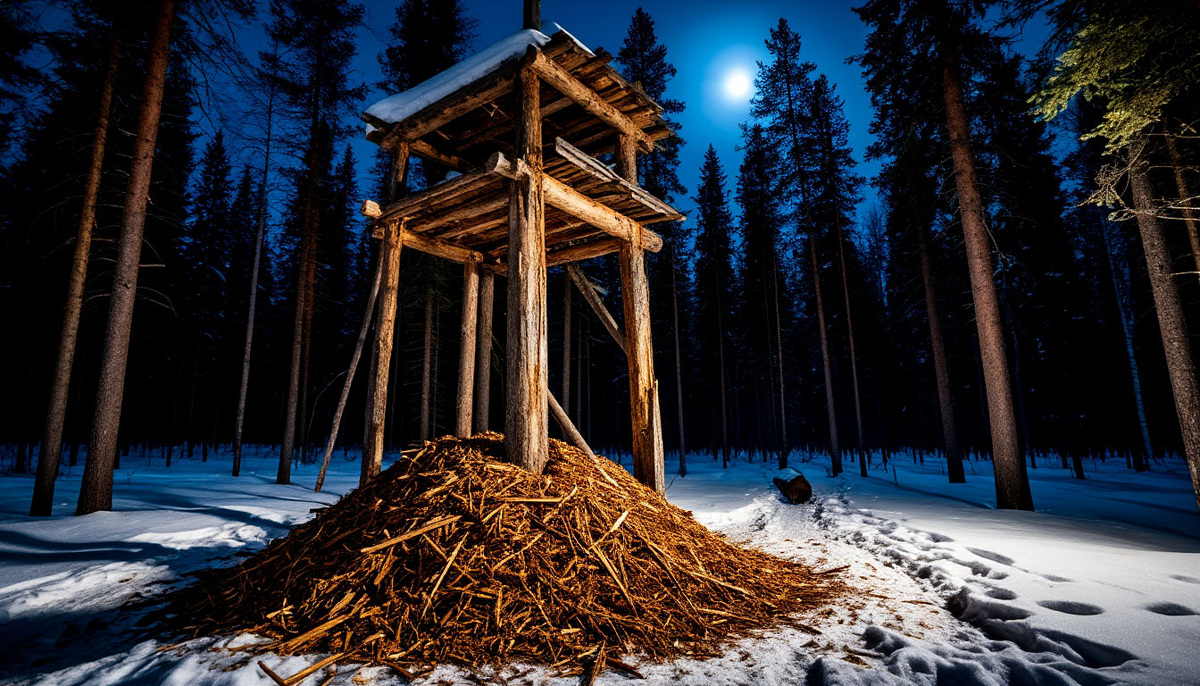 Поэтому охотничьи лабазы — эти грубые деревянные вышки для засады — мы строим на совесть. Четыре метра над землей, опоры из корабельной сосны, крыша от снега. Там, наверху, ты царь. Ты видишь всё, а тебя не видит никто. Зверь редко смотрит вверх.