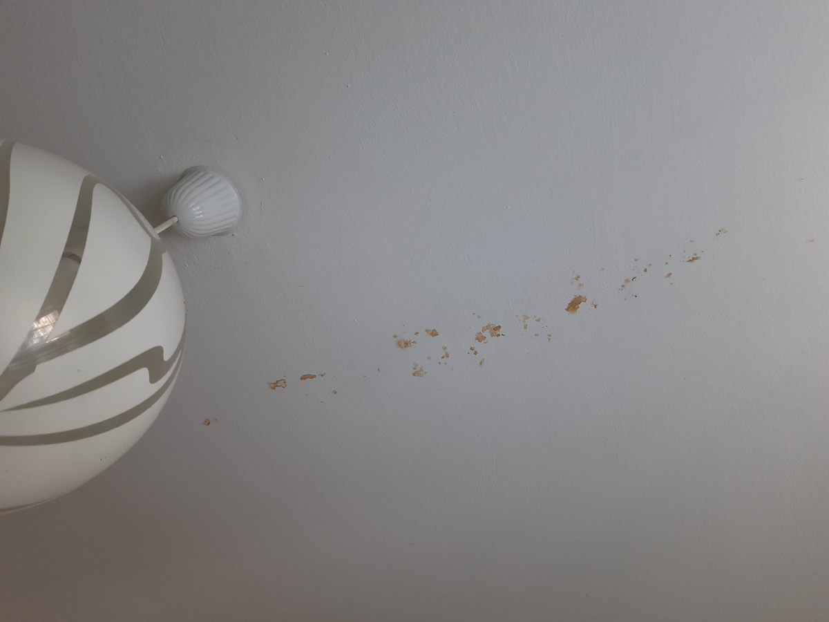 31 декабря - 1 января 2026 года Утром 31 декабря во время завтрака я подняла глаза на потолок и увидела там вот такую картину: На потолке были какие-то коричневые пятна, и шли они по одной линии. Поднялись наверх к соседям. Там сейчас живут не хозяева, а квартиранты. Они показали нам совершенно чистую и сухую кухню. Но откуда-то же взялись эти пятна? Решили, что хозяину позвоним после праздников, не хочется человеку портить настроение. Да и компенсацию требовать не будем, так как всё равно собирались делать ремонт на кухне. У нас подозрение, что квартиранты размораживали холодильник и у них вода натекла на пол. Воду они подтерли, но сколько-то всё равно просочилось под линолеум. Других версий у нас нет. Настроения это происшествие нам не испортило). После завтрака мы отправились прогуляться и заодно купить что-то к чаю. Зашли в Ейскхлеб. Выбор пирожных и тортов там огромный! Я уже много раз рассказывала про этот магазин. Сначала мы хотели купить несколько пирожных, но увидели тор