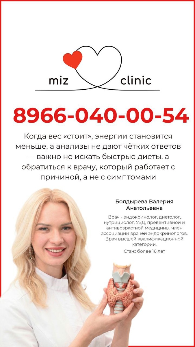 — Болдырева Валерия Анатольевна 👩⚕️ Вес стоит? Постоянная усталость? Есть вопросы по гормонам или питанию? Валерия Анатольевна работает с причиной нарушений, а не с временным результатом: — гормональный баланс — снижение веса без жёстких диет — щитовидная железа — инсулинорезистентность 📍 Москва, ул. Правды, 2А 🚇 м. Белорусская 📞 8 966 040-00-54