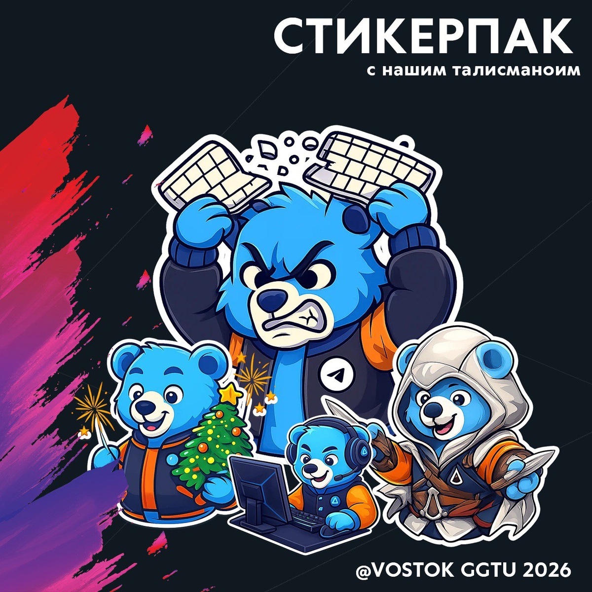 ! Представляем обновлённый фирменный стикерпак «Кибермедведь Бустер» в Telegram! ☃️ 🧦 64 крутых стикера на все случаи киберспортивной жизни: 👍 Для жарких обсуждений стратегий 👍 Для победных постов и турнирных чатов 👍 Для ежедневного общения с командой 🌲 Добавляйте стикерпак и заряжайте чаты энергией VOSTOK GGTU! 🤙 Ссылка: https://t.me/addstickers/vostokggtu Так же можно добавить стикрпкак в 💬 (разделены на 2 пакета): «Пакет 1» и «Пакет 2» Делитесь эмоциями в стиле киберспорта! Ставьте Бустера везде, где кипит геймерская жизнь. 🔴 С Новым годом, кибергерои! Пусть 2026-й будет годом ваших побед! ⭐️ #КиберспортПодмосковье #КиберспортОреховоЗуево #VOSTOKGGTU #КиберспортДляВсех #СтуденческийКиберспорт #Киберспорт #МыЗаКиберспорт #МосковскаяОбласть #ОреховоЗуевскийОкруг #ОреховоЗуево #ГГТУ #ФКСМосковскаяОбласть #ФКСРоссии #СПОМедиа