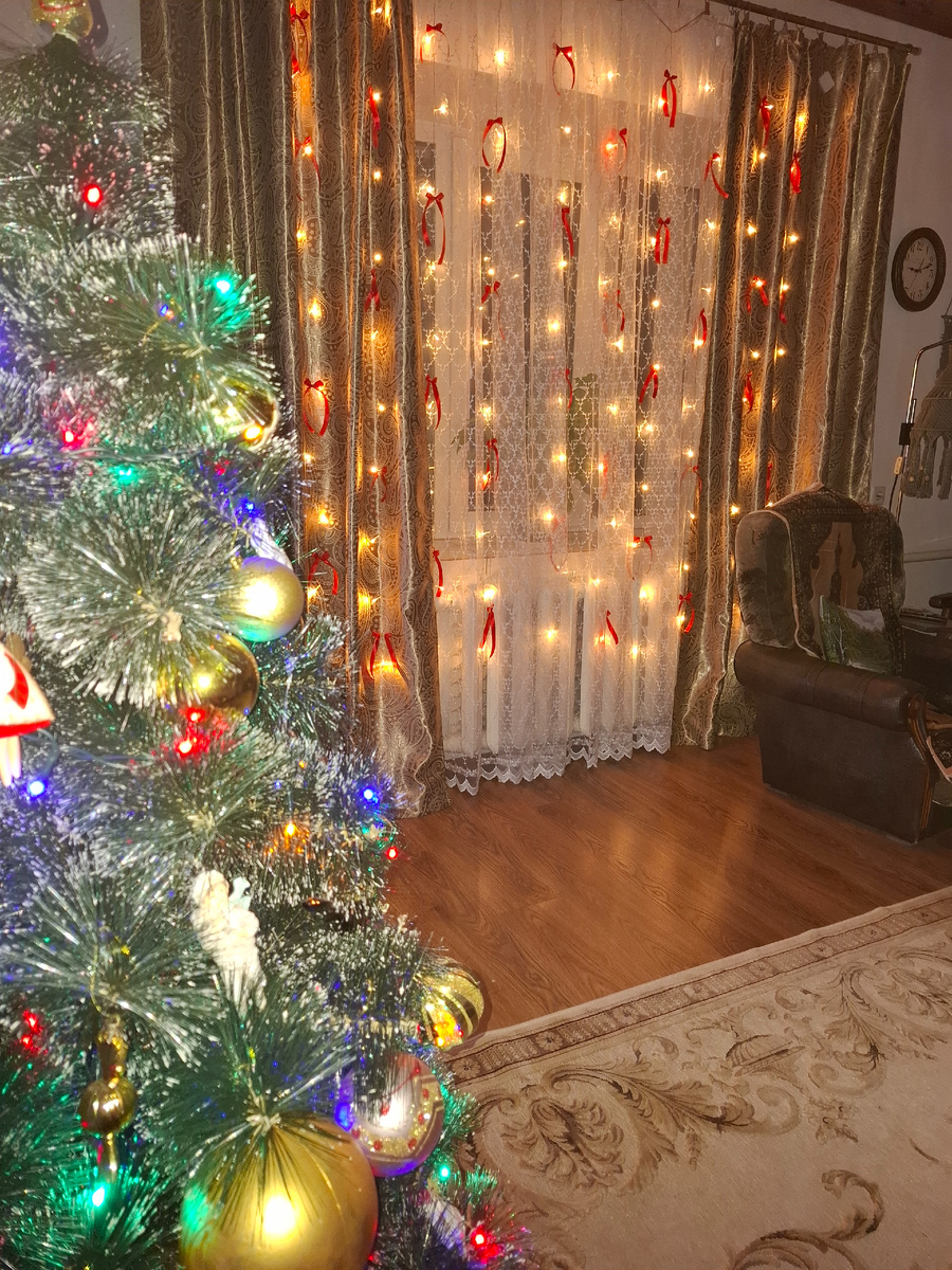 Именно Новый год по-прежнему является в нашей семье самым тёплым и душевным праздником. А его подготовка приносит не меньше удовольствия, чем само торжество. Начинаем всегда с украшения дома и установки ёлки. Делаем это за несколько дней до торжества. Много лет уже не используем натуральных деревьев: жалко. А живая ёлочка растёт у нас под окном. Украшенный дом помогает заранее настроиться на праздник и пережить суматоху последних декабрьских дней. Не забываем готовить всем подарки. Дочь оформляет их в едином стиле в подарочную упаковочную бумагу и подписывает. Вручение подарков - целый ритуал в нашей семье. 31 декабря готовим праздничный стол. В этом году постарались приготовить меньше блюд. В нашем меню: конвертики с ветчиной, сыром, помидором и укропом; мини-бутерброды с карпаччо и помидором черри; бутерброды с творожным сыром, слабосолёным лососем домашнего приготовления и свежим огурцом; салат из куриной грудки с корейской морковью, помидорами и чипсами; горячие роллы; запечён