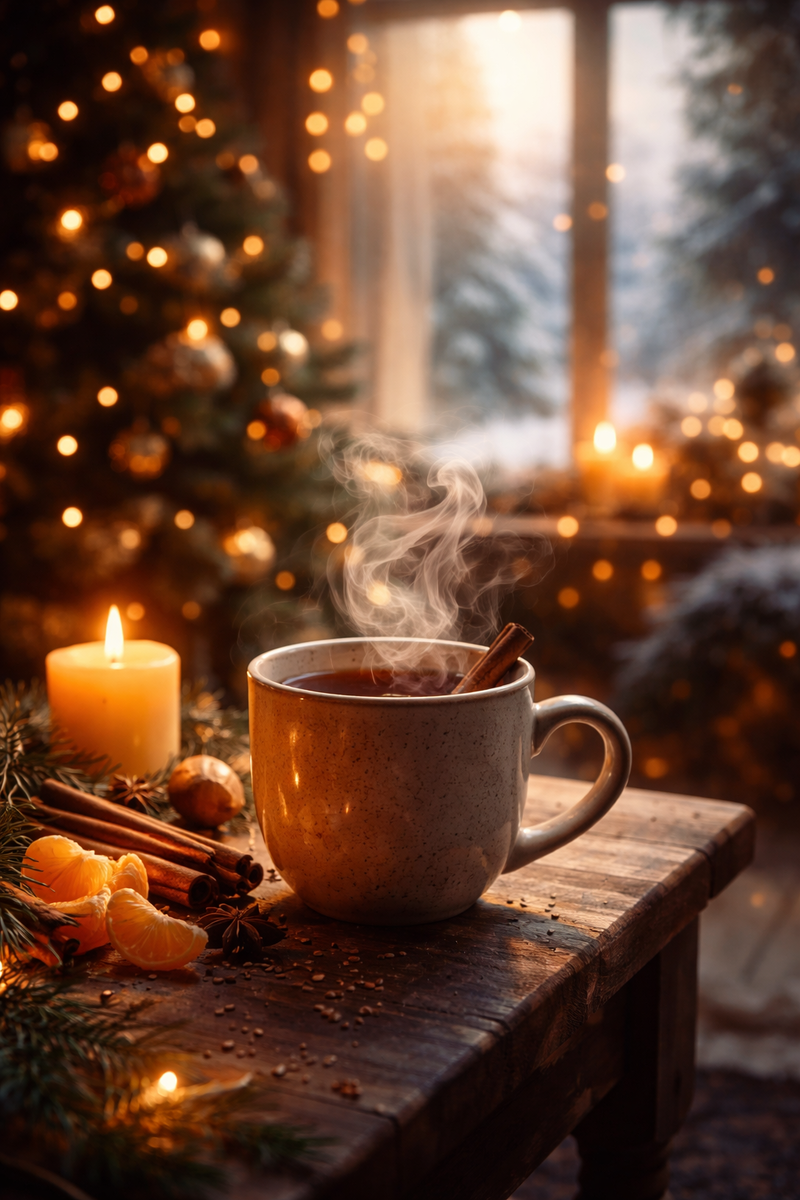 В комнате мягко мерцают огоньки елки. Они отражаются в глазах, на поверхности чашки с чаем, в маленьких бликах на подоконнике. Аромат корицы плотно обволакивает, как теплое одеяло, и кажется, что в каждом вдохе скрыта надежда, которую нельзя торопить. Сделай глоток. Почувствуй, как тепло растекается по телу, мягко массируя плечи и сердце.