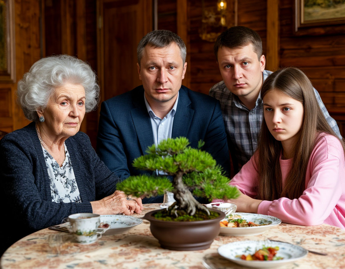 Все посмотрели на бонсай. И, о чудо (или ужас), несколько верхних веточек, действительно, казались поникшими. Листики, которые полчаса назад были упругими и блестящими, теперь слегка обвисли. Это могло быть игрой света, сквозняком от окна, моим воспалённым воображением… но выглядело это так, будто маленький можжевельник и вправду грустил.