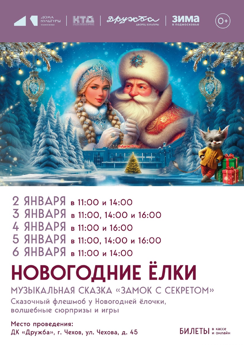 ✨ Мероприятия в ЯНВАРЕ в ДК "Дружба" 🎫 БИЛЕТЫ В КАССЕ ДК 🏢 ДК «Дружба» 📍 г. Чехов, ул. Чехова, д.45 ⭐Поддержать канал голосом ✅ Мероприятия Чехов https://dzen.ru/id/66cc4b48e9ef144699238a51 http://vk.com/chekhov_events http://dzen.ru/chekhov_events