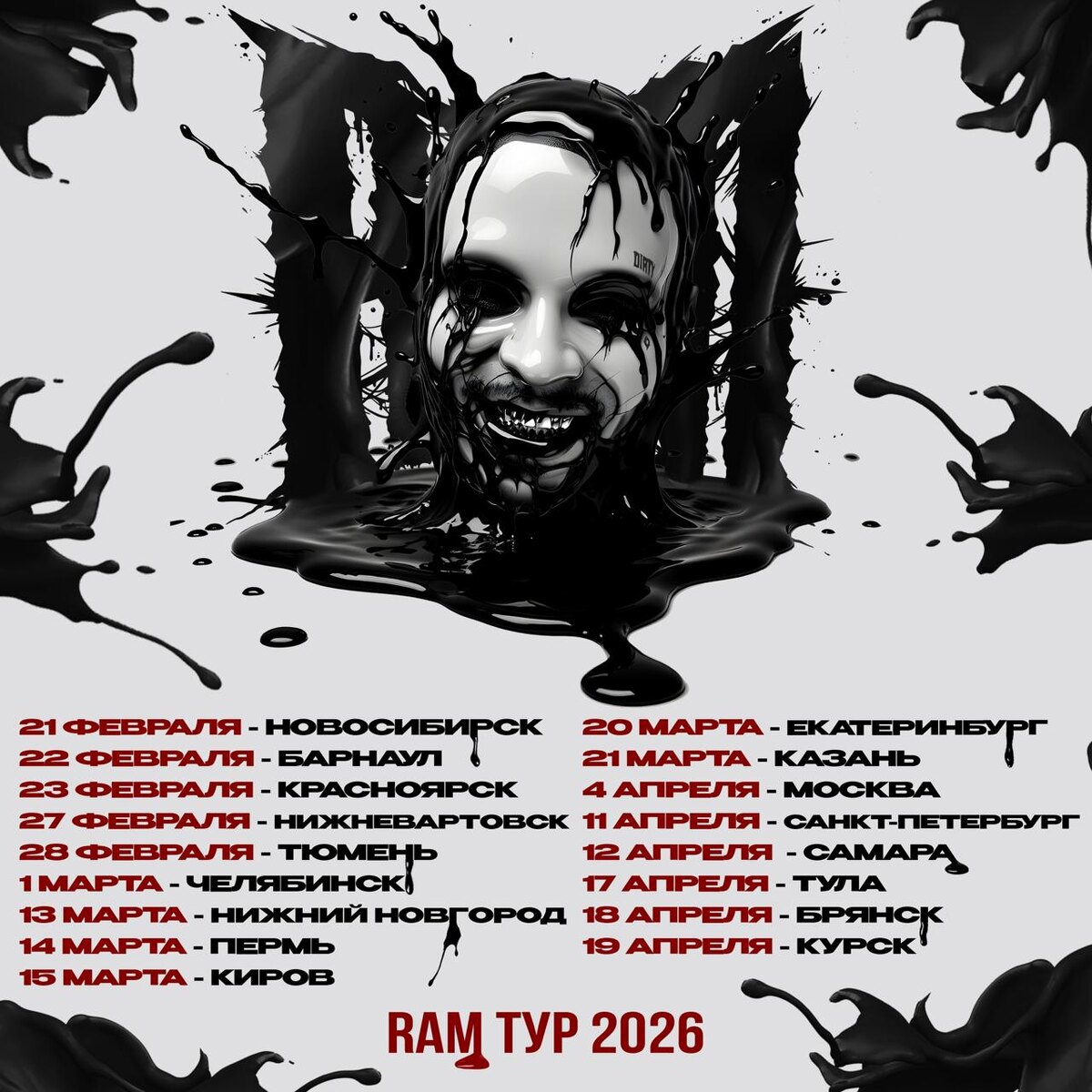 🎤 – RAM 📍 – 17 городов: Новосибирск, Барнаул, Красноярск, Нижневартовск, Тюмень, Челябинск, Нижний Новгород, Пермь, Киров, Екатеринбург, Казань, Москва, Санкт-Петербург, Самара, Тула, Брянск, Курск 🗓 – 21 февраля – 19 апреля 💵 – от 1 599 руб. 🔗 – билеты (16+) #концерты #билетынаконцерт #ram #грязныйрамирес #новосибирск #барнаул #красноярск #нижневартовск #тюмень #челябинск #нижнийновгород #пермь #киров #екатеринбург #казань #москва #санктпетербург #самара #тула #брянск #курск 👉 Список концертов: январь • февраль @est_prohodka