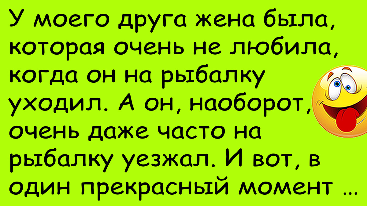У меня друг есть, который рыбалку любит. Он ни одних выходных не пропустил. Все водоемы обловил. А еще, у него жена была, весьма симпатичная женщина, которой рыбалка мужа не очень нравилась. И в первую очередь потому, что он редко появлялся дома. А её это не устраивало. Но, сколько бы она его не отговаривала от походов на рыбалку, то все равно туда ходил. Даже до скандалов дело доходило. Я к ним частенько в гости заходил, так как жил по соседству. И поэтому в курсе был всех из семейных баталий. И тут, недавно стал свидетелем очень интересной эпопеи, которая развернулась вокруг друга, его жены и рыбалки. Короче, жене надоело, что она не может своего мужа от рыбалки отвадить, и она попросилась с ним на рыбалку. Он сначала отнекавался, потом посмеивался, а потом согласился. И на ближайшие выходные он её с собой на рыбалку взял. Червей накопали, удочек насобирали и помчали на реку. Спустя некоторое время возвращаются обратно. И, самое интересное, что рыба у них с собой есть, а друг все рав