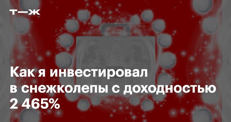 🤩 Наш читатель — инвестор с восьмилетним стажем. В его портфеле — ценные бумаги на миллион рублей. Но ни одна тщательно спланированная сделка за все годы не принесла ему такой доходности, как одно случайное вложение в снежколепы. Как все начиналось: Пару лет назад весной я поехал в «Ашан» за продуктами и наткнулся на акционный товар. Это были игрушки-снежколепы, которые нужны нашим детям не более пары недель в году. Проверил цену — 5 ₽. И вот я стою возле горы снежколепов и выгляжу как неловкий подросток на дискотеке, который пытается собраться с духом, чтобы пригласить девушку на танец, и просчитывает возможные исходы. Серьезные инвестиционные решения в нашей семье принято обсуждать совместно, поэтому позвонил соинвестору — жене. Предложил взять побольше, чтобы следующей зимой загнать дороже. Что было дальше: https://t-j.ru/inv-tg/a-kak-invest-snejkolepy/