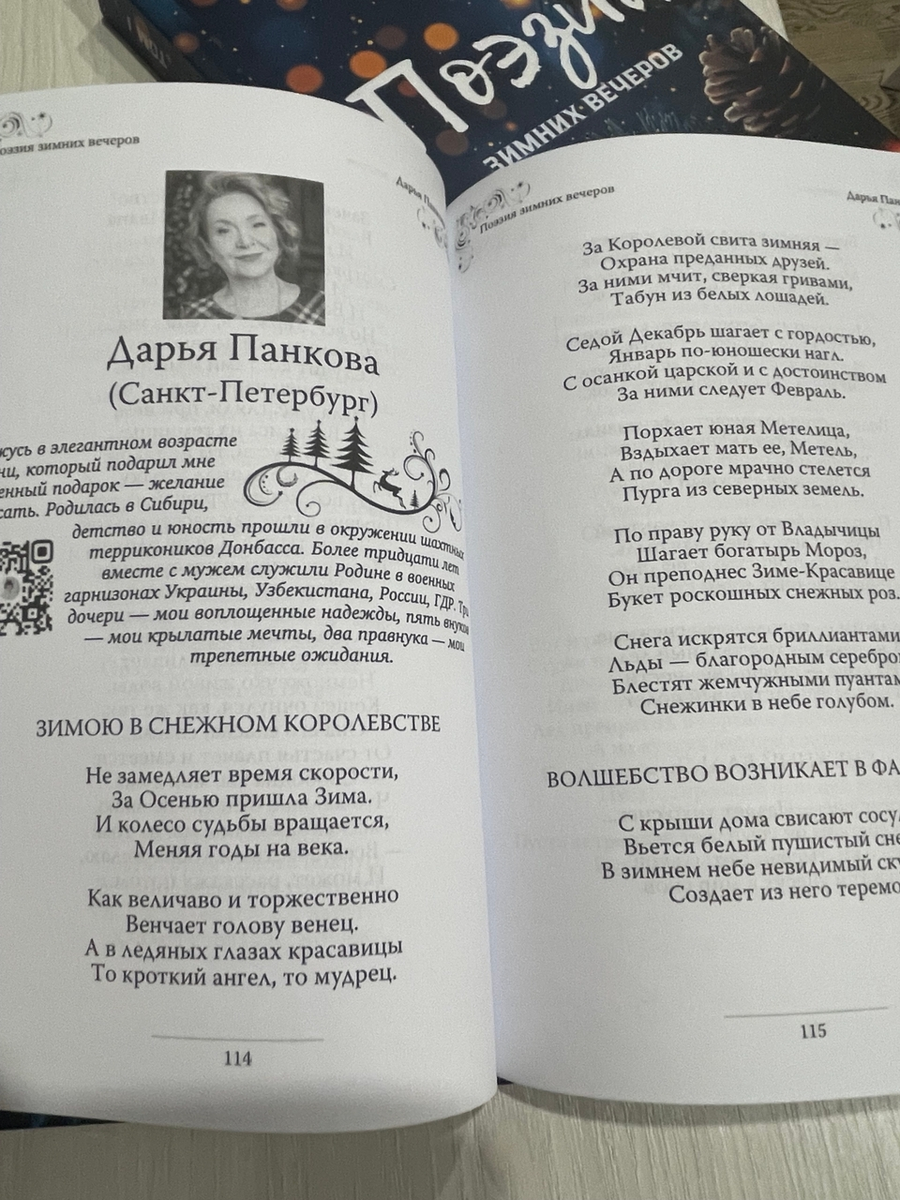 В последних числах декабря получила посылку от Издательского Дома "АРТ-Сияние". Это был прекрасный новогодний подарок — сборник стихов "Поэзия зимних вечеров", в котором я была среди авторов. Было очень приятно увидеть свои мысли в стихотворных строках и хотя это уже третий сборник, но новизна не пропала. Есть в этом ни с чем несравнимая чудодейственная магия — моё трепетное отношение к любой книге, многократно увеличенное ощущением авторской причастности.