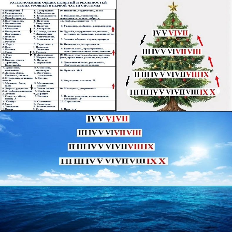 2. Слаборазвитые общие понятия из групп состояний и отражений в первой части системы обозначают деградацию и смерть старых, больных и дефектных живых природных объектов. Логично, что всевозможные трагедии и пессимистическое отражение действительности способствуют деградации состояния живых организмов. Неживые объекты никогда не умирают, а преобразуются из одних видов материи в другие виды материи. Окончание существования в прежнем виде неживых природных объектов обозначают другие общие понятия, такие как: разрушения, преобразования, разделение, распад. Анализ состояний и отражений высокоразвитых и слаборазвитых реальностей в первой части системы показывает, что в нормальных обществах есть благоприятные условия для появления чего-либо нового. В буржуазных подобиях обществ появление большинства новых природных объектов и идей зависимо от субъективных мнений авторитетов, и многие из них погибают после череды страданий и мучений.