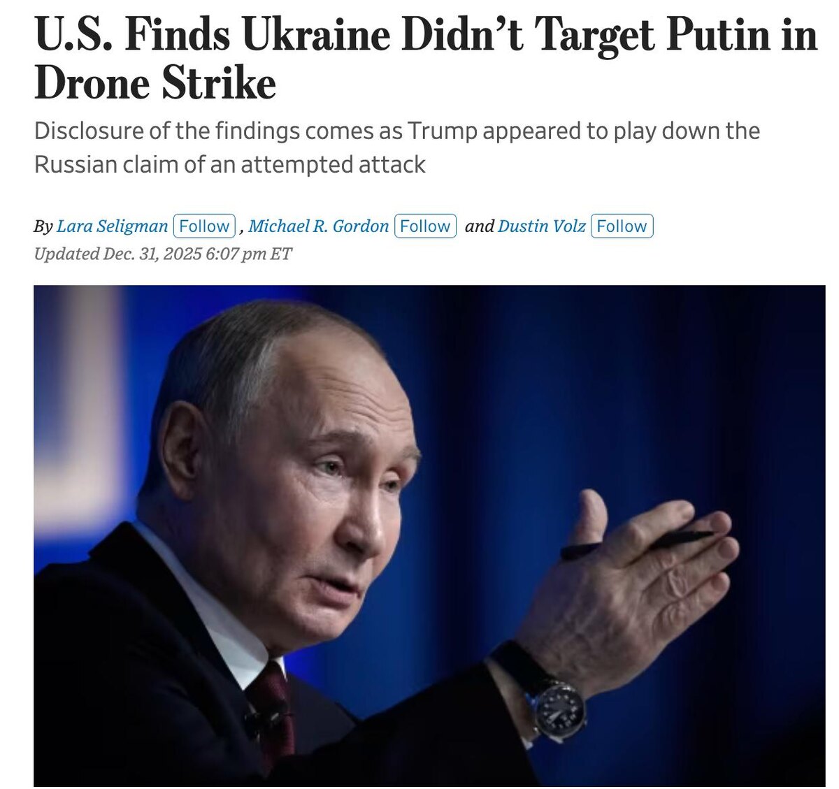 ЦРУ считает, что Украина не наносила удар по резиденции Путина, пишет Wall Street Journal