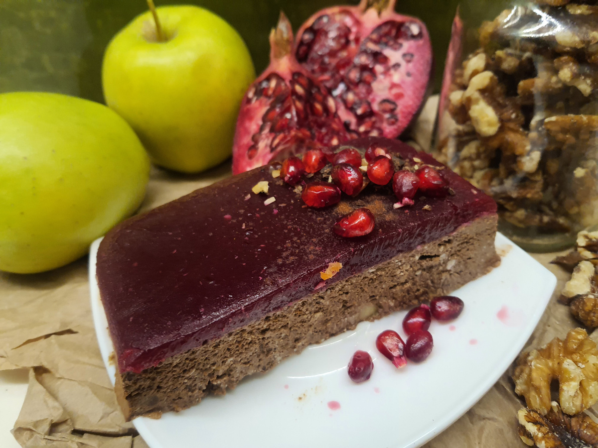 1. Творожный десерт с зеленым яблоком, какао и гранатом