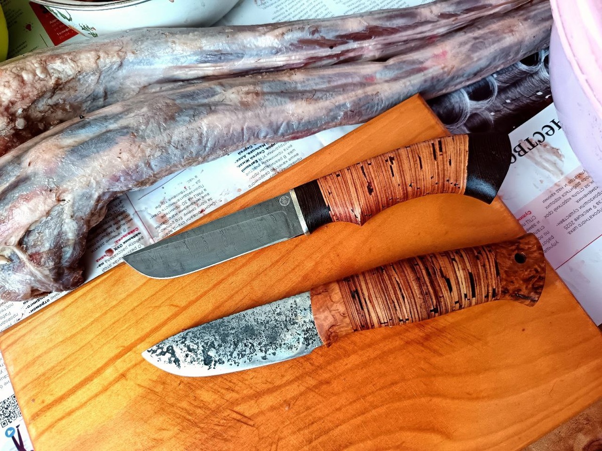 Нож "Грибник" — сталь дамаск. Нож "Пуукко" от РБ, сталь У8.