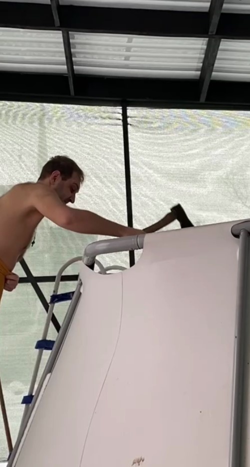 Друзья всем привет. В этом году мы построили беседку и поставили туда бассейн, под крышу. Ну и решили его не сливать, посмотреть как он перезимует. Отчитываюсь - зимует вроде нормально. Корка льда (3-4 см) прихватывает, но в целом все хорошо. Его не порвало нигде и ничего с ним пока не случилось. Максимальная минусовая температура у нас была (-12) как раз на Новый год. Но самое интересное не это. Посмотрев на бассейн мы так же поняли, что он не цветет зимой, с водой ничего не происходит. За счет того, что он под крышей, грязь никакая туда не летит, и собственно...почему бы не продолжить купаться=) Первое время купались только в плюсовую температуру, потом решили и в минус ходить. Для этого вырубается сейчас прорубь Этого обычно достаточно для того, чтобы полностью погрузиться. Правда глыбы льда конечно мешают. Ну и после, заходим=) Ну и с "чистой" совестью выходим=) Конечно это не полноценное "купание". Это все мы делаем в рамках закаливания, и после подобных водных процедур встаем п
