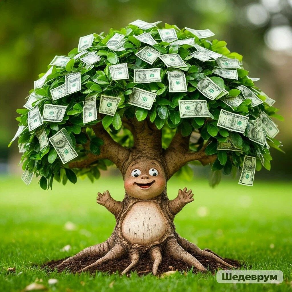 У всех бабушек лежали маленькие сугробы на шапках. Все сидели с семечками, а у последней было денежное деревце. И плакатик фломастером на картонке:"Магнит для денег".