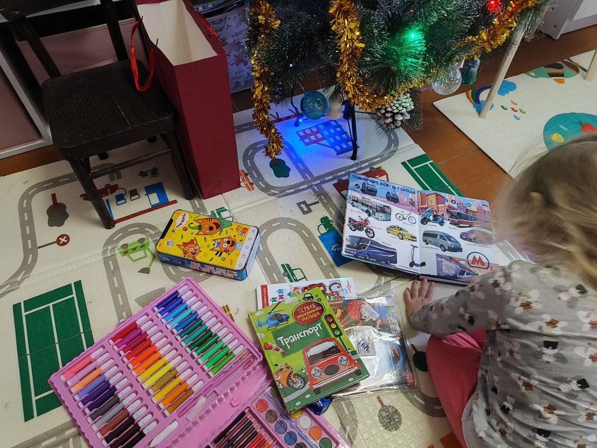 Мы отметили скромно тихо и по-семейному. Муж зевал еще до полуночи.) Я тоже подустала. Начали смотреть концерт за столом, но потом переместились к телевизору в горизонтальное положение. Короче мы даже часа не продержались после нового года и легли спать. Я перед нашим сном поставила дочке подарок под елочку. И сказала ей когда она ложилась, чтобы завтра утром проверила там, не будет ли там подарков. Кстати, дочка не дотянула до Нового года. Где-то в 23 пошла спать. И то уже немного плакала. Ее можно понять, она устала, много эмоций, дед Мороз приходил, подарки. Зевала и канючила. Пыталась весь щенячий патруль с большой машиной забрать в кроватку, но в итоге взяла только героев на маленьких машинках. Мы их выстроили вдоль бортика кровати и так они не мешали спать.) Про деда Мороза тут: В 2,30 дочка проснулась, сама встала на горшок и не смогла ровно укрыться одеялком и позвала меня.) Я сразу подумала о подарке. Вот будет номер, если она сейчас начнет этот подарок распаковывать. Но она