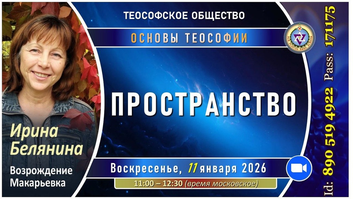 🌕⭐️💥В это воскресенье, 11 января 2026 года, в рамках проекта «Основы теософии» состоится беседа на тему "ПРОСТРАНСТВО