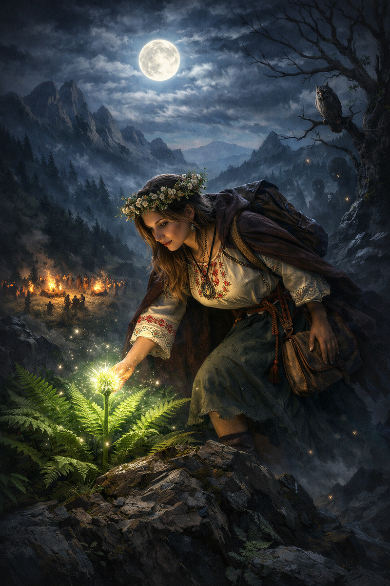 С детства я слушала бабушкины рассказы о древних традициях и языческих обрядах. Но один из них завораживал меня больше остальных — легенда о цветущем папоротнике в ночь на Ивана Купала. Моя бабушка не просто знала эти истории, она жила ими. Местные шептались, что у неё есть дар, связь с силами природы, которую не каждому дано понять. Чем старше я становилась, тем сильнее меня тянуло разгадать эту тайну. Можно ли действительно использовать природную магию себе во благо? Существует ли та самая мистическая ночь, когда границы между мирами становятся тоньше? Мой интерес перерос в одержимость. Каждое лето я клялась себе, что непременно отправлюсь на поиски цветка, но судьба словно испытывала меня — планы рушились в последний момент. Бабушка жила в особенном месте. Её дом стоял у подножья горы, которую все окрестные жители называли Мёртвой скалой. Даже днём там царил полумрак, а воздух был пропитан тревогой. Старожилы рассказывали страшные истории о том, как люди гибли там во второй половине