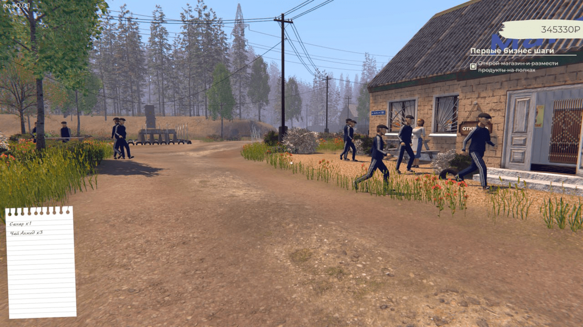 На этом этапе разработки мы сосредоточились на системах и фундаментах, которые дальше будут масштабироваться. В первую очередь была переработана логика интерактивных объектов - теперь их проще расширять и добавлять новые типы взаимодействий. На этой основе появились экранные подсказки с контекстной информацией и кнопками действий. Появилось больше мелкого, но важного интерактива: освещение в магазине, мусорный бак для пустых коробок, расширенные подсказки у предметов. Ключевые изменения получил магазин. Теперь существует полноценный геймплей: NPC спавнятся в деревне, гуляют по точкам и заходят за покупками. Игрок открывает магазин, принимает заказы у кассы, собирает товары с полок, относит их в зону выдачи и завершает оплату. Касса автоматически считает сумму товаров, а сдача пока считается вручную и выдается с возможностью совершить ошибку. Добавлена система ценообразования: игрок может выставлять собственные цены, ориентируясь на закупочную и рыночную стоимость. Завышенные цены снижа