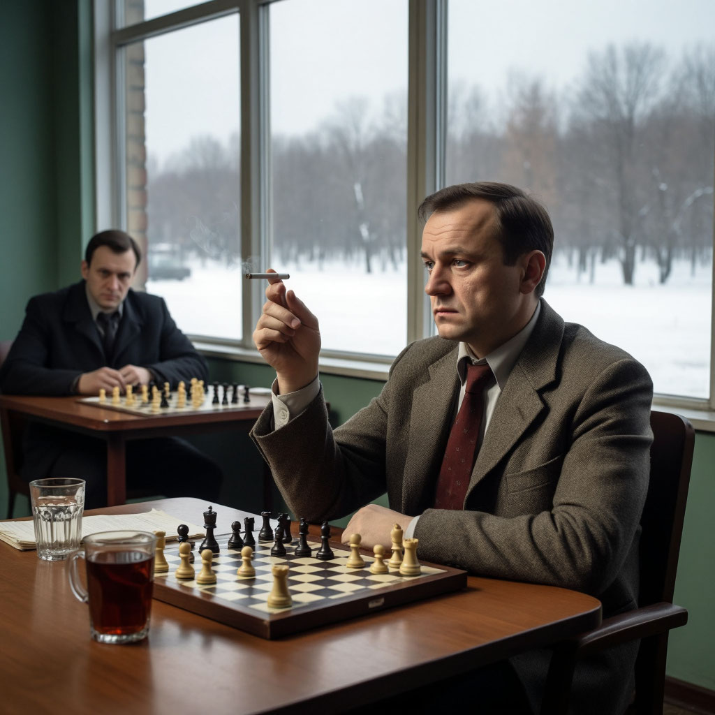 А в городском шахматном клубе до сих пор хранится его старый портфель, забытый в спешке. Внутри — потрёпанный учебник дебютов, пачка сигарет «Прима» и листок с записью партии, которую никто не смог разгадать. На нём всего 12 ходов, а потом — жирная точка и надпись: «Здесь всё кончается».