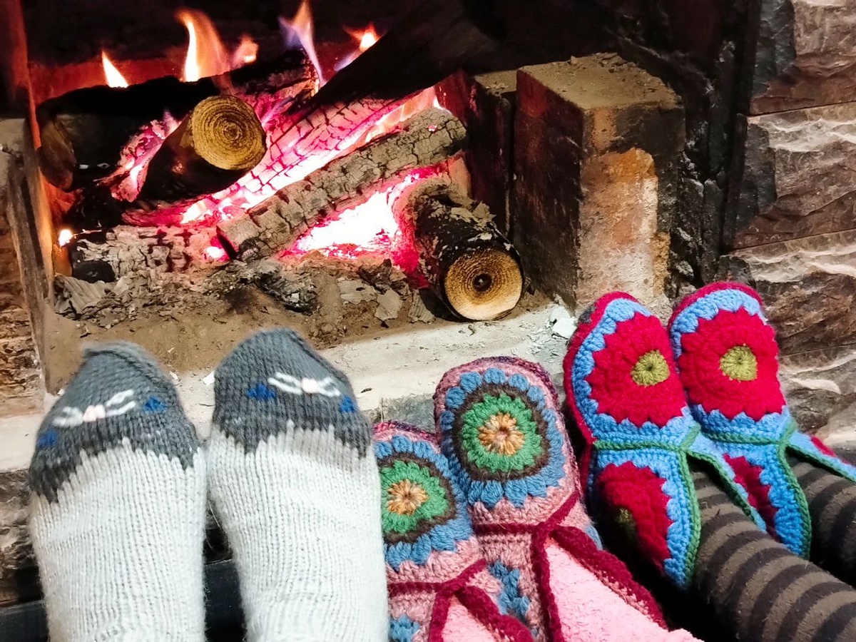 заметёт дороги, я где-нибудь застряну! А я вообще посылок не ждала. Распаковываю с интересом - а там так много тепла! Самого настоящего! Варежки, носочки, повязочки. Как человек с вечно ледяными руками и ногами, пришла в полнейший восторг! Вообще в 35 лет стало очевидно, что тем, кого любишь, надо дарить тёплые носки. И это не занудство. Это действительно про заботу. Всё примерили. Нарядились. Греемся у камина и любуемся. Спасибо, Дина! 🤗 А за окном тем временем жуткая метель, порывы ветра, штормовое предупреждение, циклон Улли, план "Погода", красный уровень опасности, работает спецтехника. А нам тепло 🤗