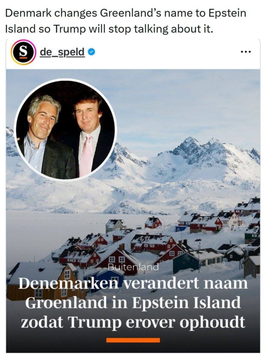 «Дания переименовала Гренландию в «Остров Эпштейна», чтобы Трамп перестал о ней говорить», - шутят в соцсетях.