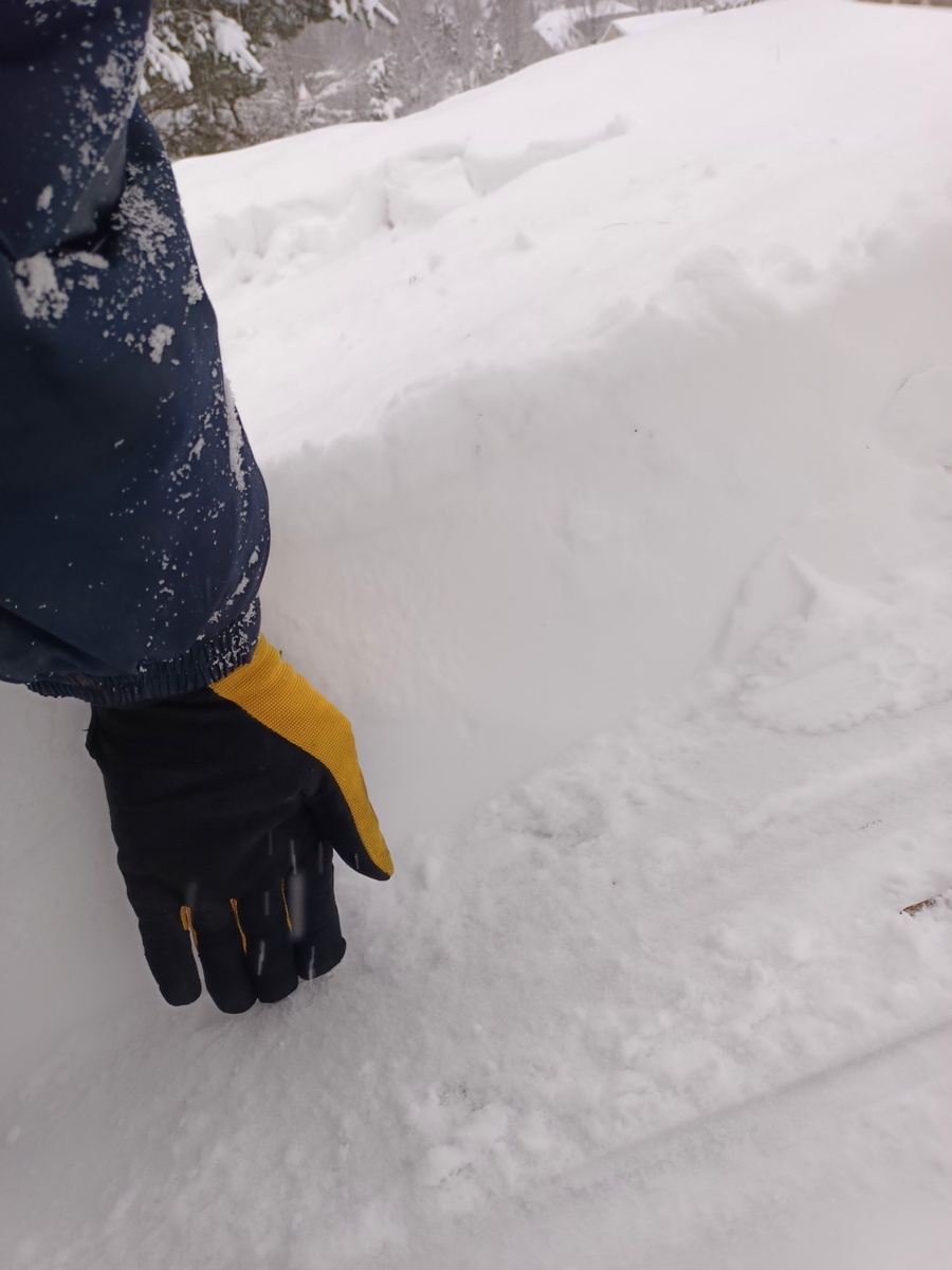 За два дня вот столько снега набралось за воротами. Ещё раз убедился — снегоуборочная машинка, аккумуляторная — это вещь!